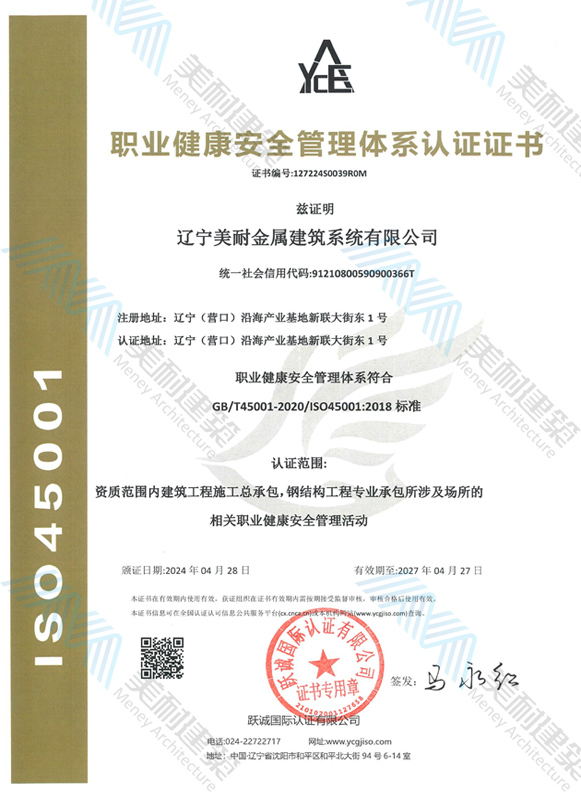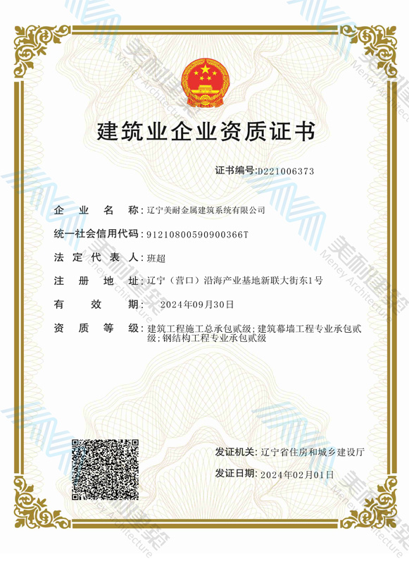 遼寧美耐金屬建筑系統(tǒng)有限公司位于遼寧(營口)沿海產(chǎn)業(yè)基地,專注于預(yù)制金屬建筑系統(tǒng)領(lǐng)域,是一家集工業(yè)建筑設(shè)計(jì)、制作、施工及相關(guān)的技術(shù)咨詢與服務(wù)為一體的綜合性服務(wù)企業(yè)。作為國家鋼結(jié)構(gòu)協(xié)會會員、中國建筑金屬結(jié)構(gòu)協(xié)會會員單位與國家高新技術(shù)企業(yè),美耐建筑集建筑工程施工總承包、鋼結(jié)構(gòu)工程專業(yè)承包等多種資質(zhì)于一身,并擁有22項(xiàng)鋼結(jié)構(gòu)建筑領(lǐng)域?qū)@?項(xiàng)軟件著作權(quán)。